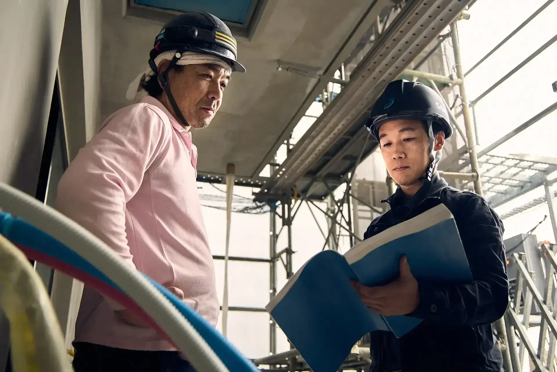 施工管理は工事現場の施工や予算、安全面に加え、役所への手続きや書類作成など、工事に関わるすべてのことを管理します。施工管理技士という国家資格が必要な、一生モノの仕事です。